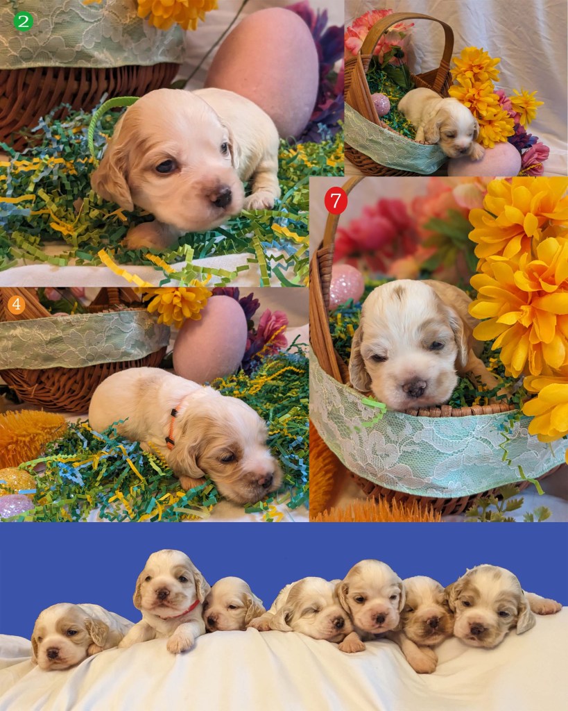 Looking for some love? You have come to the right place!! We have 7 adorable cocker spaniel puppies for sale, three boys and five girls. Mom and dad are CKC registered English Cocker Spaniels with the same beautiful honey and tan spot pattern as all their puppies. They are all looking for a forever home that will love them with a fenced yard and indoor shelter. Puppies come with paperwork to mail in register in your name. We can meet to make a local delivery in the Dayton, Texas area for free. If the delivery area is anywhere outside of the Dayton area there will be a charge of $60 for up to an hour drive. Then $1 for each additional minute of travel.