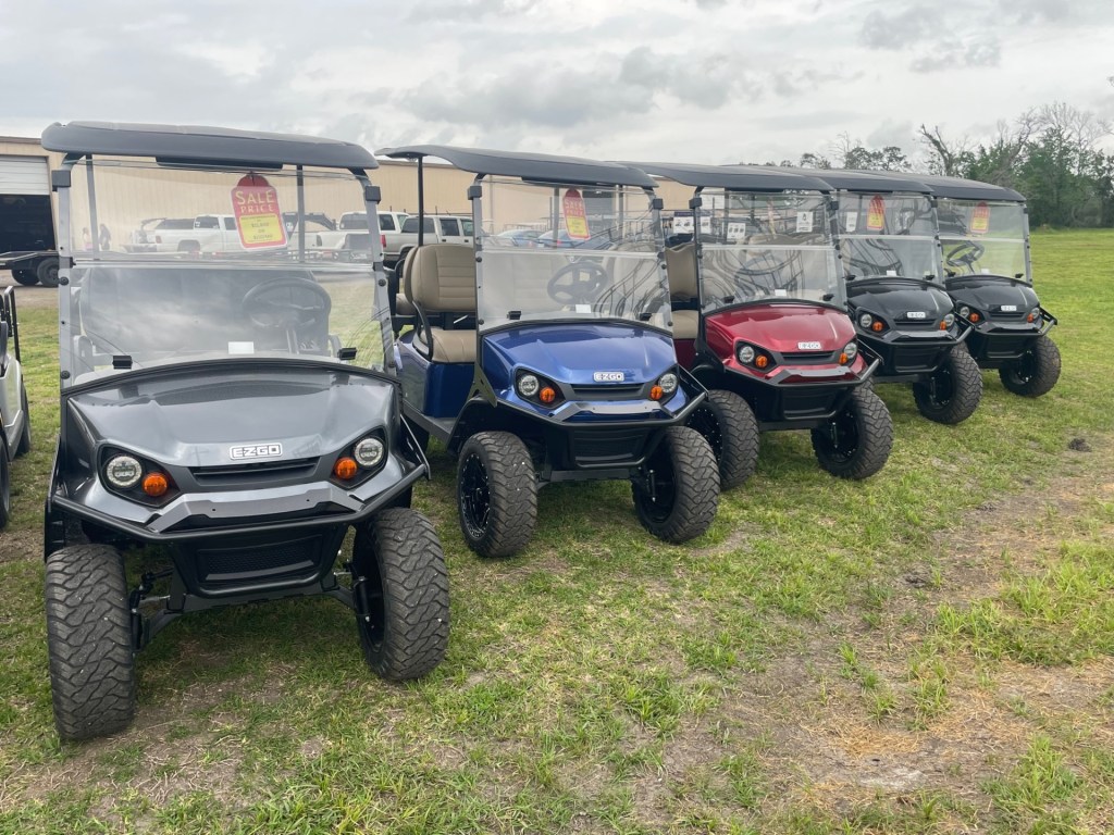 BRAND NEW E-Z-GO S4 GAS EFI. 4 pass capacity with flip seat and rear cupholders. 13.5hp gas efi engine. Lifted with upgrade tires/rims, premium seats, windshield, mirror, LED headlights, tail lights, lighted cupholders. Many colors available! 3 year E-Z-GO included. Call now 409-892-7000