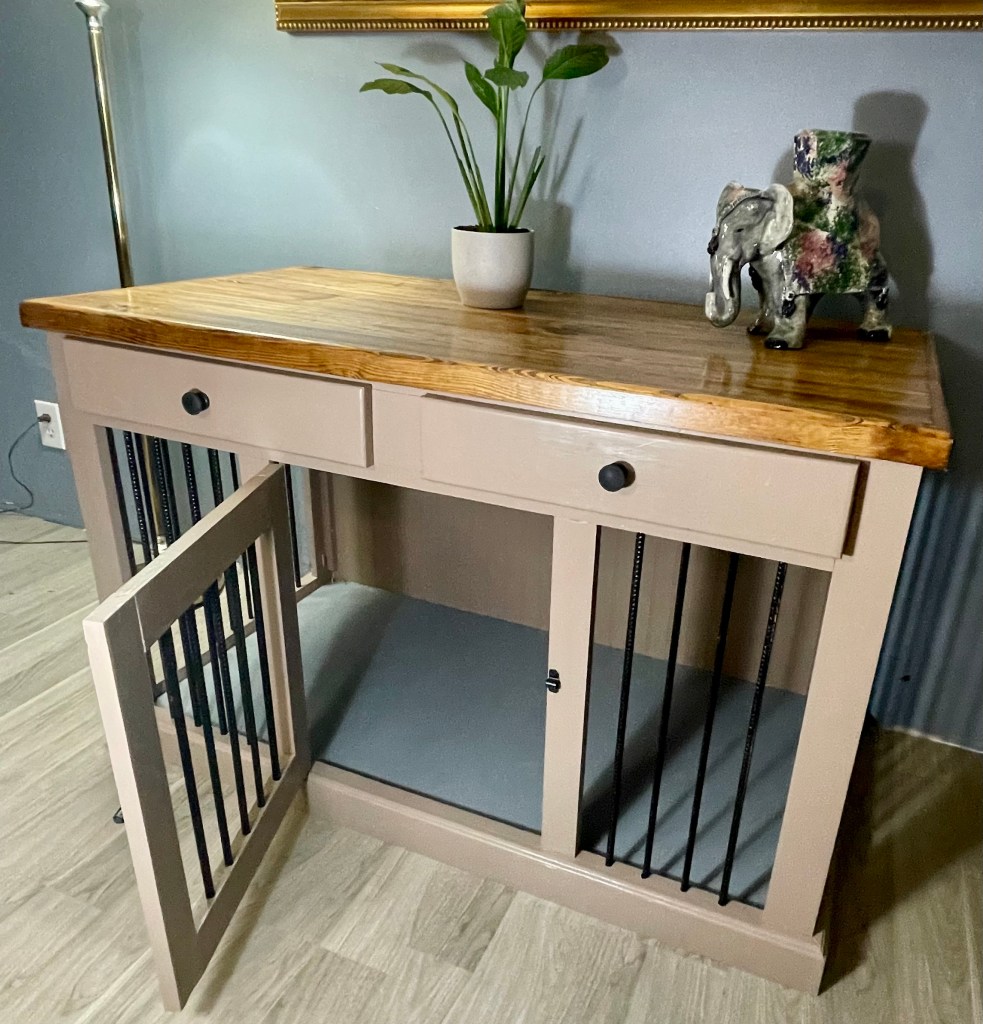 Transform your pet’s space with our exquisite Handmade Solid Wood Indoor Dog Crates. Crafted with precision from premium solid wood and reinforced with sleek steel bars, these crates are available in 2, 4, 6, or 8-foot lengths. Elevate functionality with optional drawers and a dedicated food/water bowl drawer. Tailor the crate to your exact specifications with custom sizing and choose the perfect paint or stain color to seamlessly integrate into your home. Provide your pet with a luxurious retreat, where style meets strength. Because every wag-worthy moment deserves a touch of elegance. Delivery is available