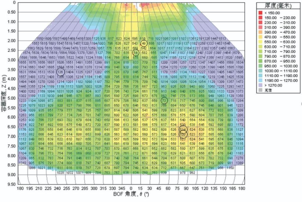 During the measurement, the laser head of the equipment rotates at a certain step angle to rapidly change the angle of the pulsed laser beam. Within 4 minutes, the three-dimensional surface contour of the converter lining can be formed, and the thickness information of the furnace lining can be obtained through coordinate conversion calculation. The measurement accuracy up to ±2mm.